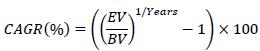 “CAGR” means the compound annual growth rate of Market Capitalization, measured as of the last day of the Annual Measurement Period or Final Measurement Period, as applicable, and shall be calculated as follows: