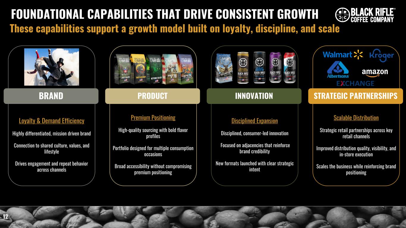 4 Black Rifle Coffee is a brand-first company built by Veterans, rooted in authenticity, and grounded in community. WHO WE ARE PILLARS OF BRAND IDENTITY Authenticity Matters Our story is real. The mission is lived, not manufactured, and customers recognize the difference Veteran Founded Built by Veterans who carry the culture, values, and lived experience of the community we serve Premium By Design We deliver high-quality, expertly roasted coffee and experiences that reflect pride in craft and standards Mission in Action We stand for the communities we come from and serve, and we reinvest in them as the business grows